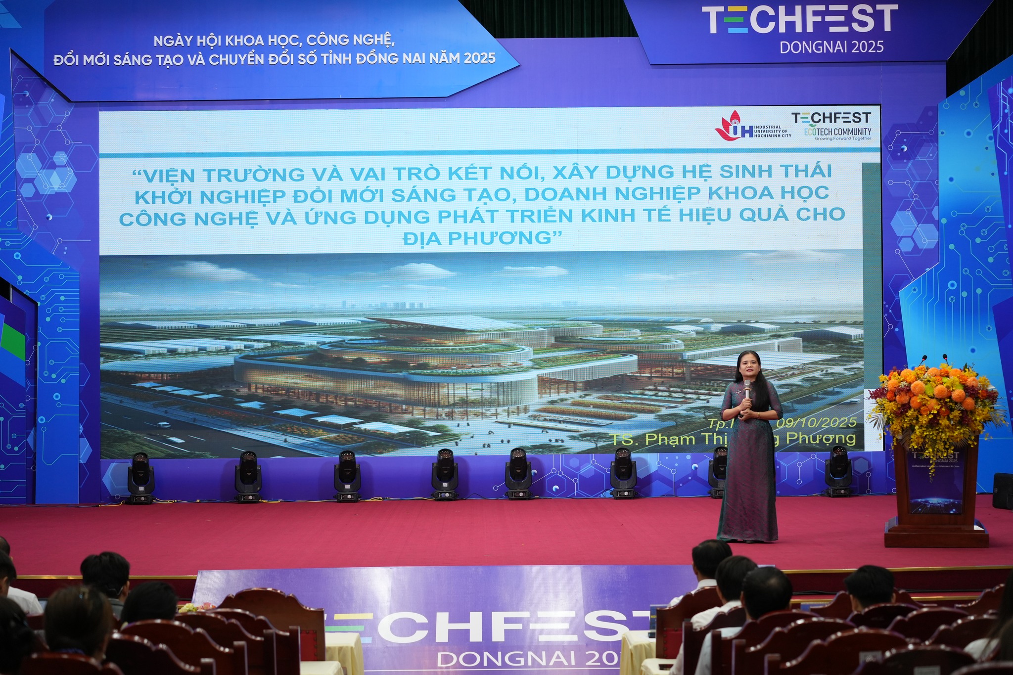 TechFest Đồng Nai 2025 còn là dịp để các trường đại học, viện nghiên cứu và doanh nghiệp giới thiệu kết quả nghiên cứu, tìm kiếm cơ hội hợp tác. Trong đó, Trường Đại học Công nghiệp TP. Hồ Chí Minh (IUH) là một trong những đơn vị đồng hành tích cực, mang đến các giải pháp và mô hình nghiên cứu ứng dụng trong lĩnh vực hóa học vật liệu, sản xuất xanh và công nghệ sinh thái.