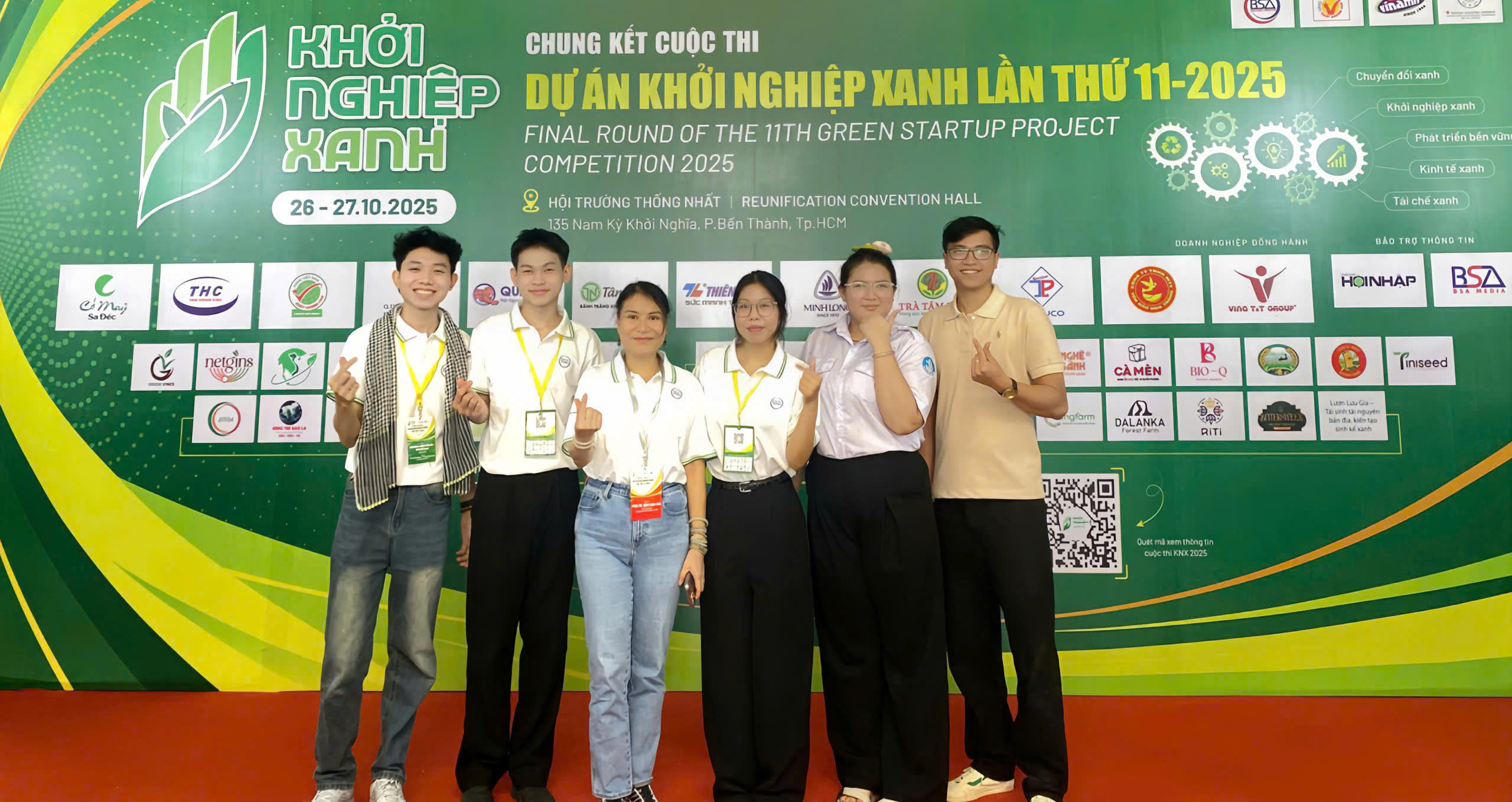 Hôm nay, 26 tháng 10 năm 2025, ba sinh viên Trường Đại học Công nghiệp TP.HCM đã bước vào vòng Chung kết Cuộc thi Dự án Khởi nghiệp Xanh lần 11 với dự án Netgins – Gừng sưởi ấm, sinh kế xanh. Sau hơn nhiều tháng thử nghiệm không ngừng nghỉ dưới sự dẫn dắt thầm lặng của Quý Thầy Cô Trường Đại học Công nghiệp Tp.HCM (IUH), ba bạn trẻ Đặng Hoàng Khang, Trần Quỳnh Huyền Trân và Lâm Đoàn Minh Phúc đã sẵn sàng cho hành trình quan trọng nhất.
