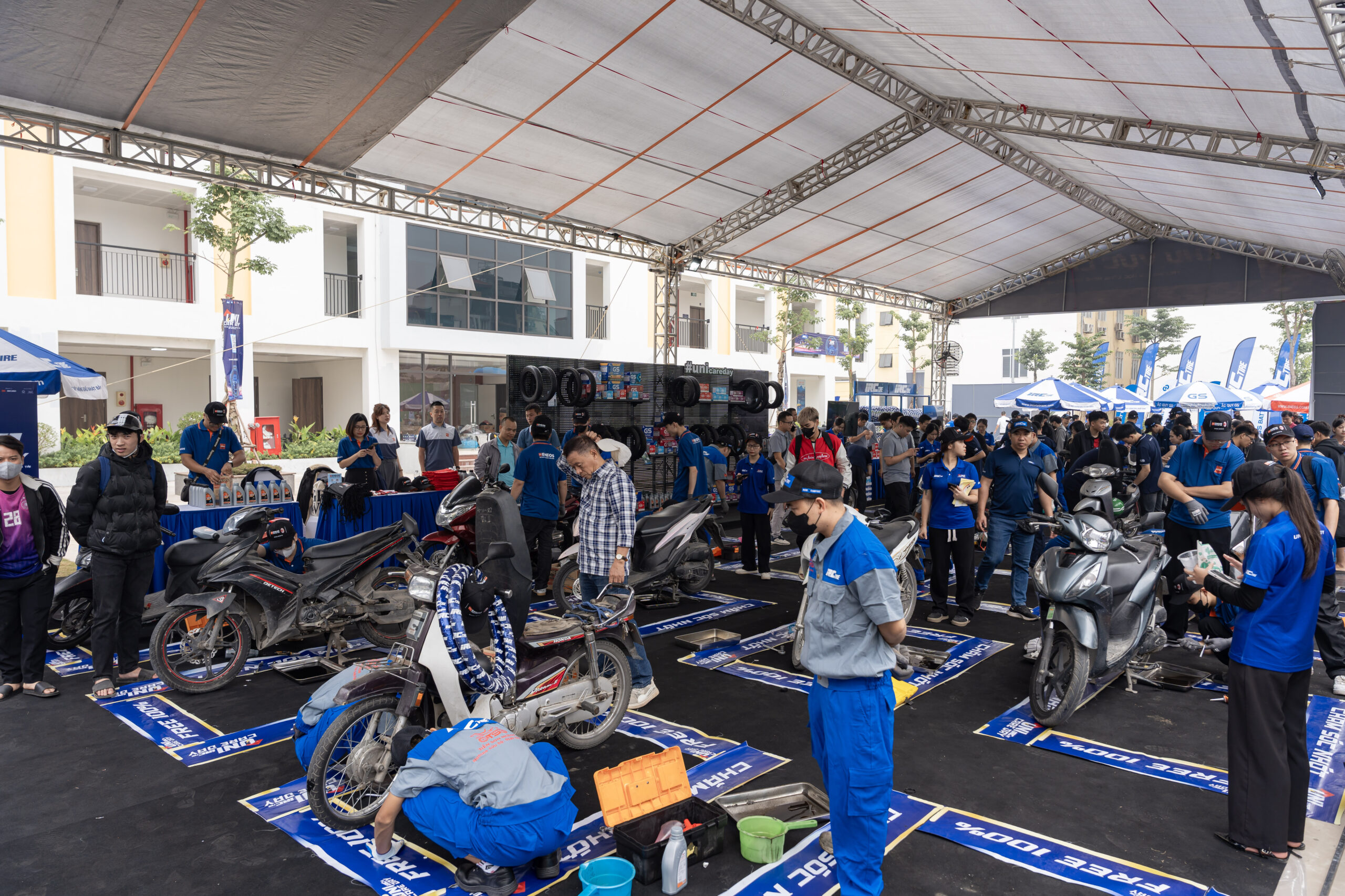 Điểm nổi bật của Uni Care Day nằm ở quy trình kỹ thuật được thiết kế chuyên sâu, do đội ngũ kỹ thuật viên của các nhà tài trợ trực tiếp thực hiện. Mỗi chiếc xe đều được chăm sóc theo 5 hạng mục:
