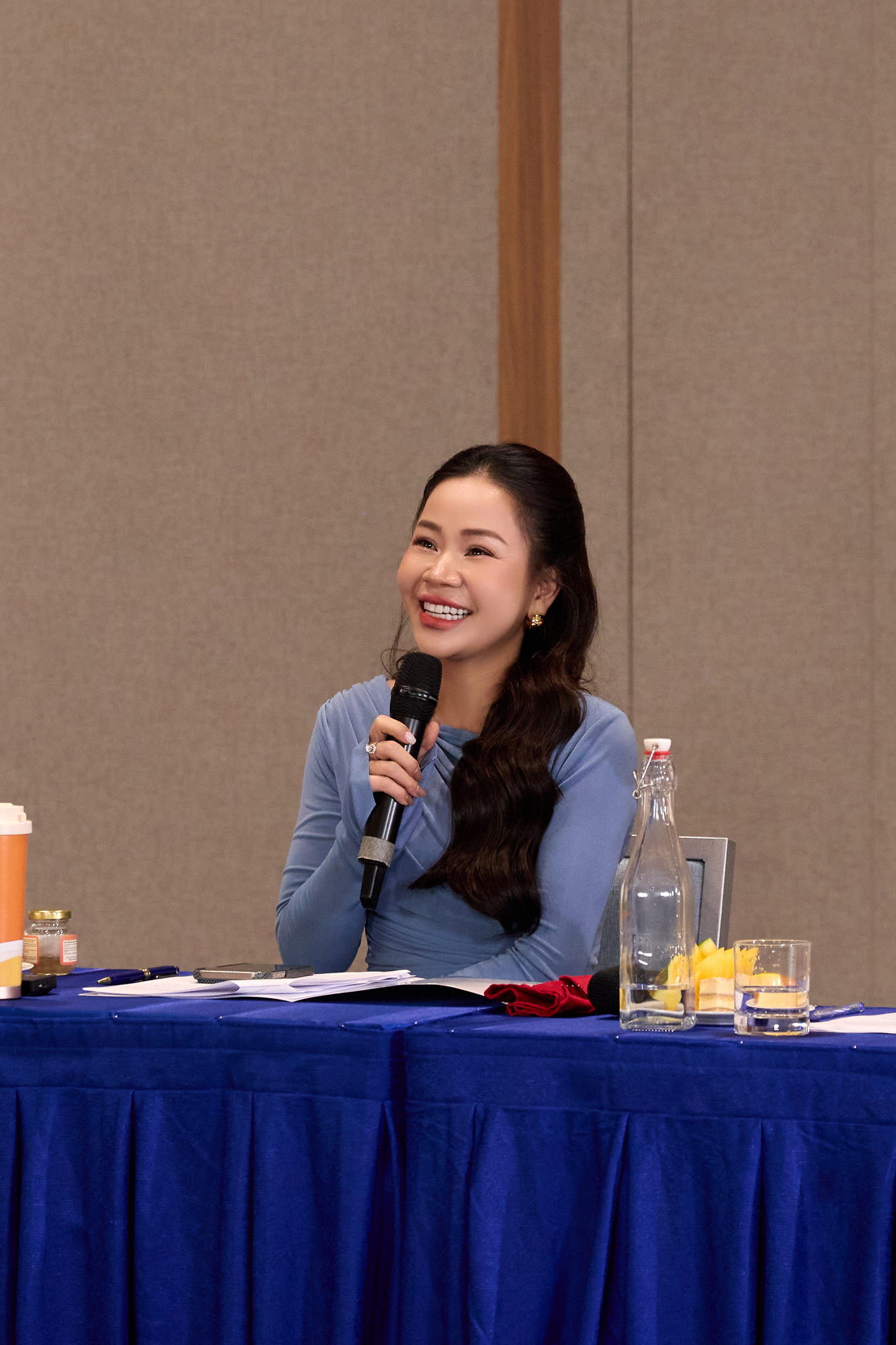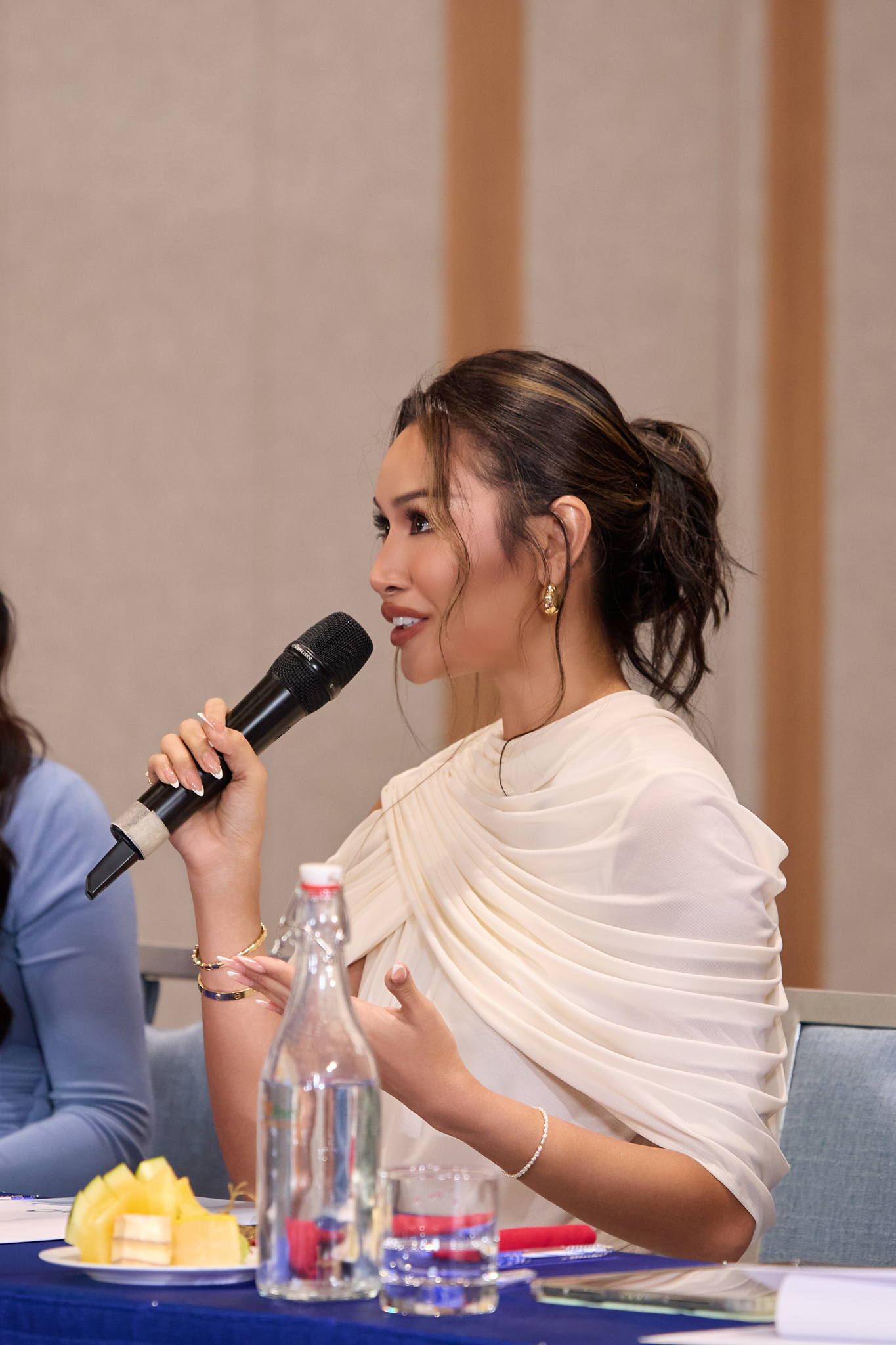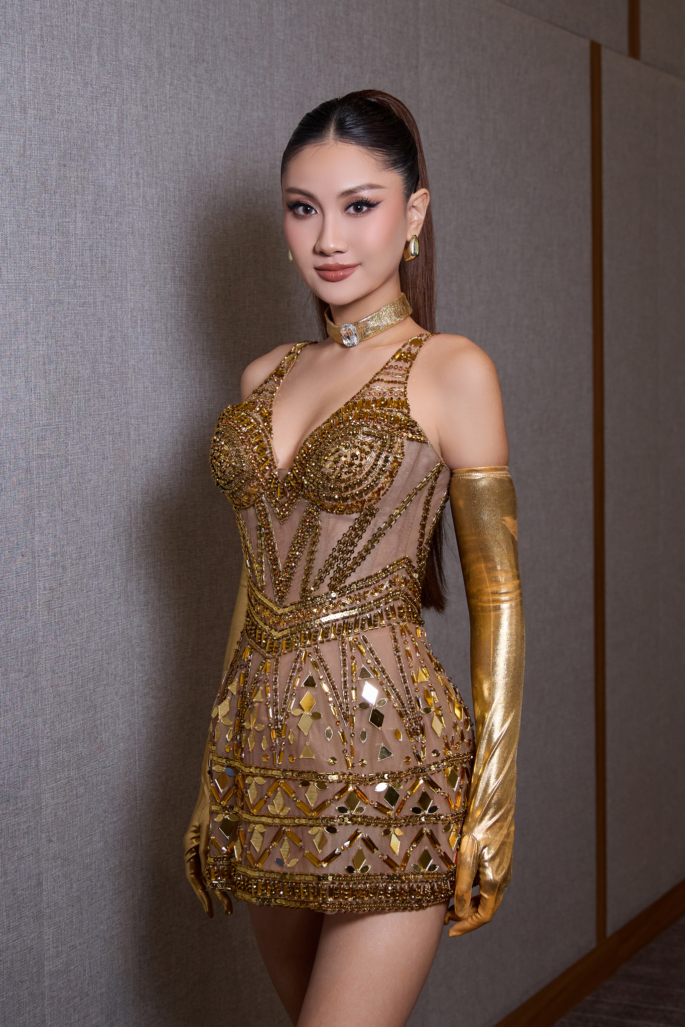 Ở phần Ứng xử Top 5 với format chuẩn Miss Cosmo, Phương Linh trả lời bằng tiếng Anh mạch lạc, giữ nhịp tốt và thể hiện rõ tư duy logic. Đây là phần giúp cô phát huy thế mạnh về tốc độ xử lý tình huống và ngoại ngữ.